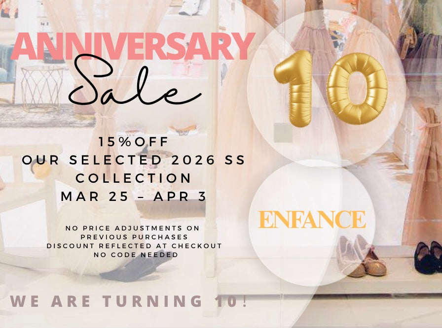 Celebrating our 10th Anniversary with a 15%discount on selected 2026 Spring Collection, click on the link below to shop for the collection